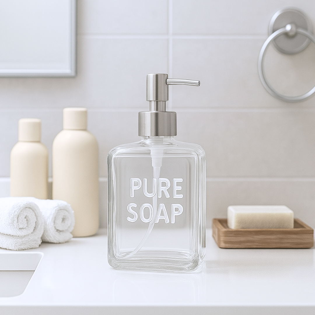 Dispenser de vidrio cuadrado para jabón liquido o detergente