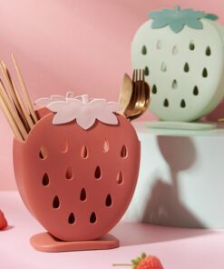 Hermoso escurridor de cubiertos con forma de frutilla, paa darle un toque distintivo a tu mesada.