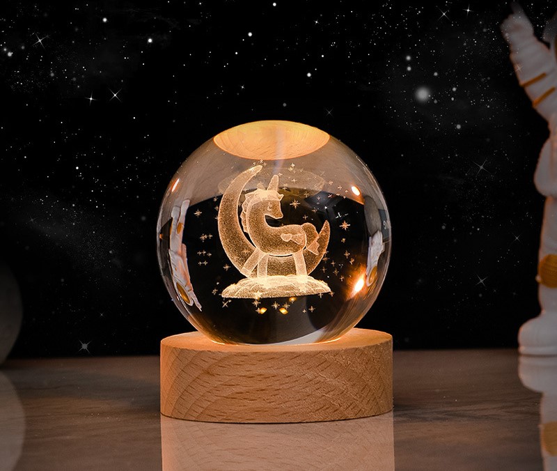 Esfera confeccionada en vidrio 3D, Luz Calida.