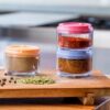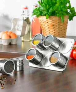 Una tapa transparente es muy útil para encontrar las especias, tiene un diseño giratorio con tamiz o agujeros: cuatro agujeros pequeños que le permiten agregar especias A los alimentos y un orificio grande que es ideal para mezclar Y cocinar.