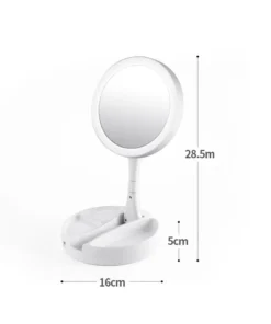 – Material: plástico resistente con un soporte organizador de cosméticos en su base.