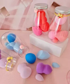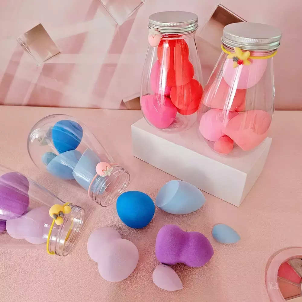 (Frasco con 6 esponjas para maquillaje de distintos tamaños y modelos, ideales para cada zona del rostro,las esponjas son lavables y reutilizables.