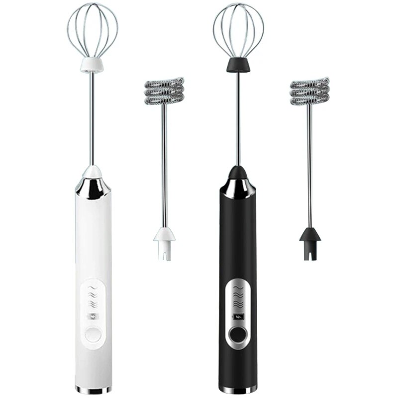 Batidor de huevos eléctrico multifuncional: el batidor viene con 2 batidores de huevos de acero inoxidable de grado alimenticio de alta calidad. Una (mezclador en espiral) es perfecta para café, mantequilla, lattes, capuchinos, chocolate caliente, y le da a tus bebidas un acabado profesional. Otro (batidor de bolas) es adecuado para batir y batir crema y claras de huevo, es un buen ayudante en la cocina.