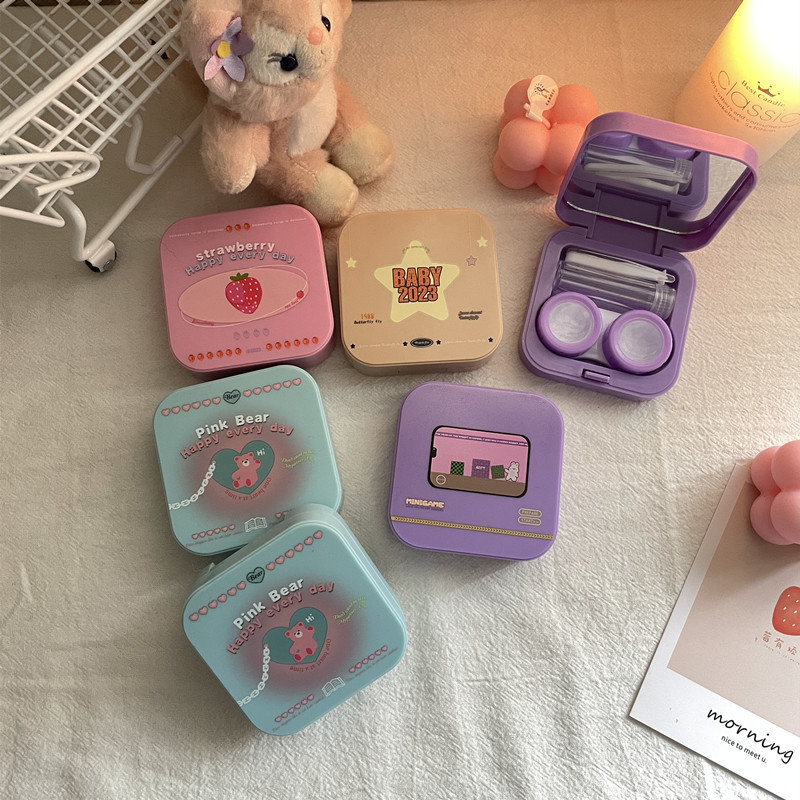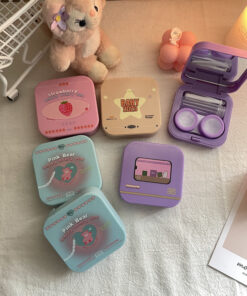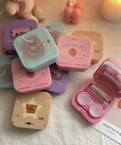 una cajita porta lentes de contacto con espejo y pinza