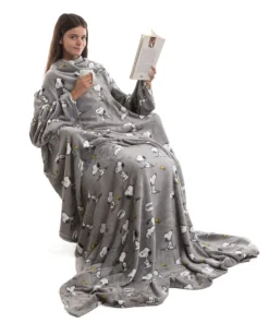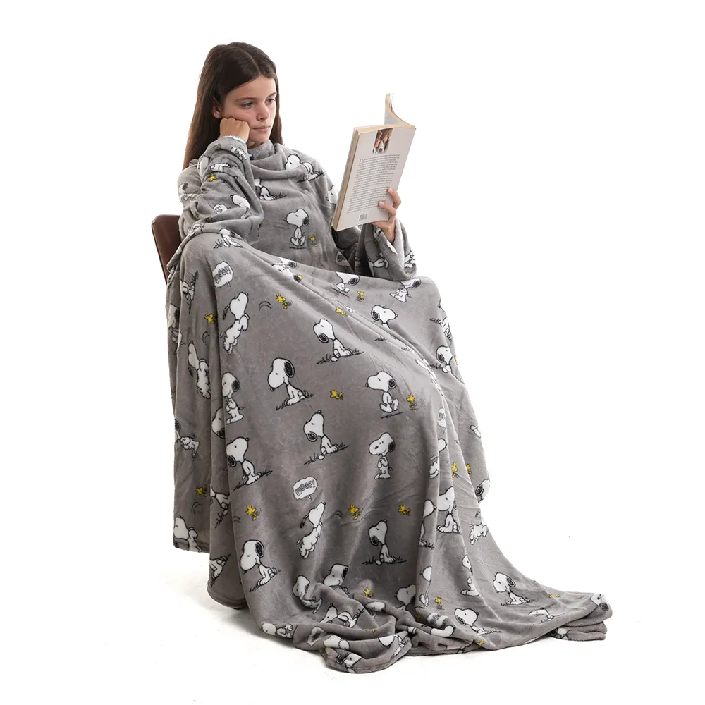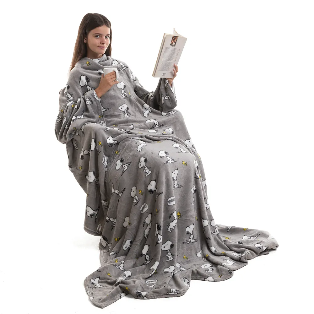 La frazada con mangas es ideal para estar súper abrigado los días de frío pero con los brazos libres y calentitos con el más cute diseño de Snoopy.