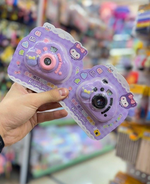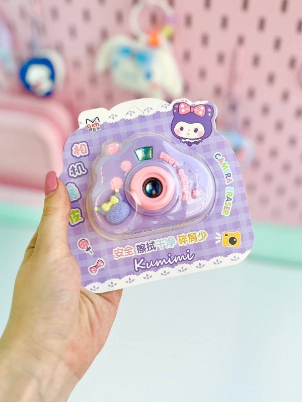 Goma con diseño en forma de una cámara, trae un dije de kuromi diseñado con strass, Disponible en dos colores negro y rosa
