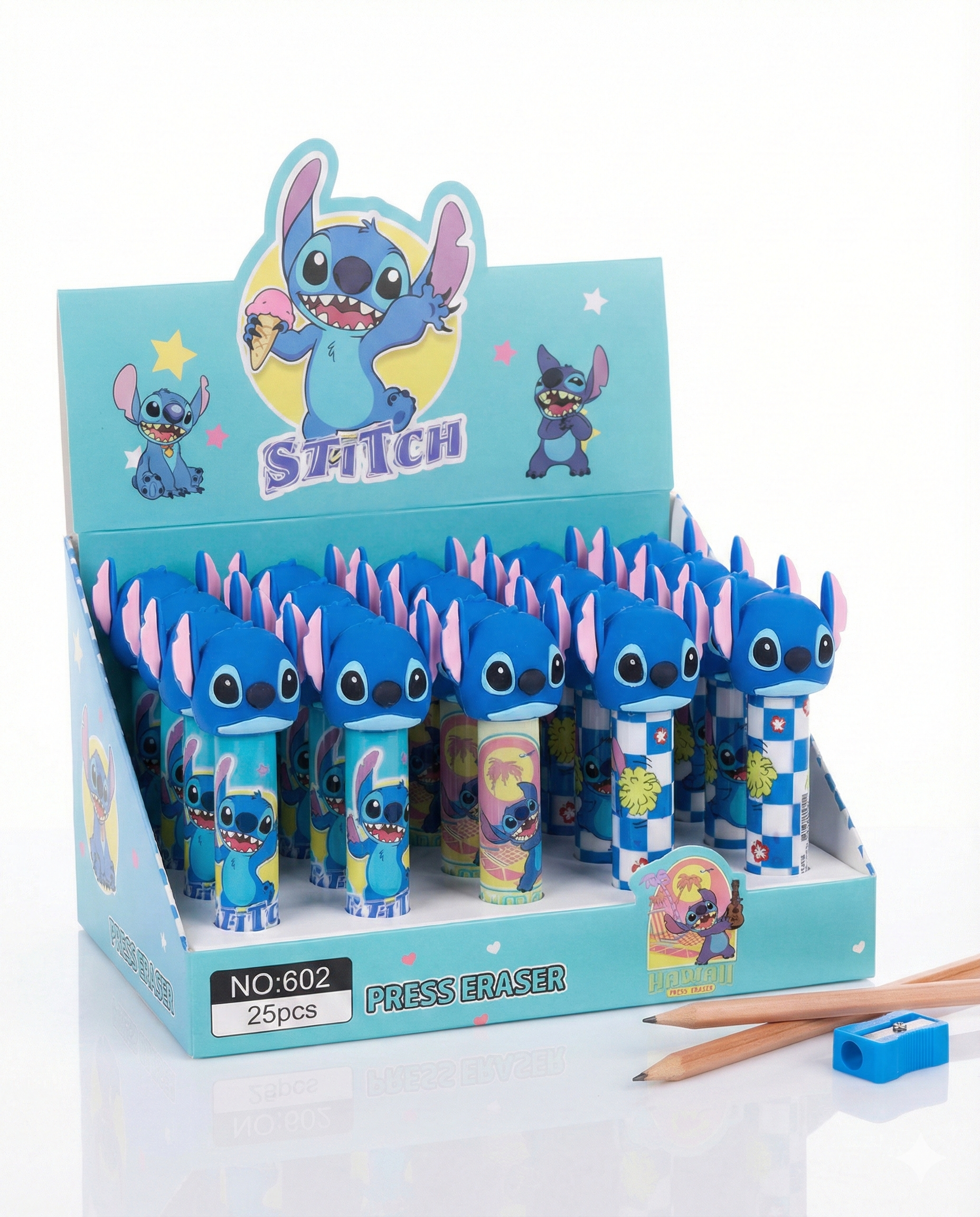 Las gomas de borrar tienen la forma de las cabezas de los personajes y el cuerpo impreso en el mango.