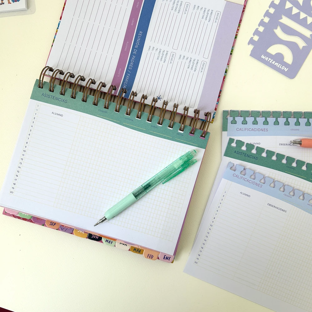 Hojas de asistencias y calificaciones para 7 cursos, si tenés muchos cursos te recomendamos comprar dos ☺️