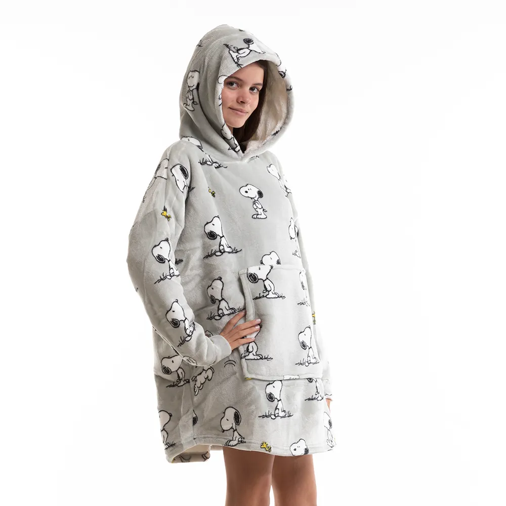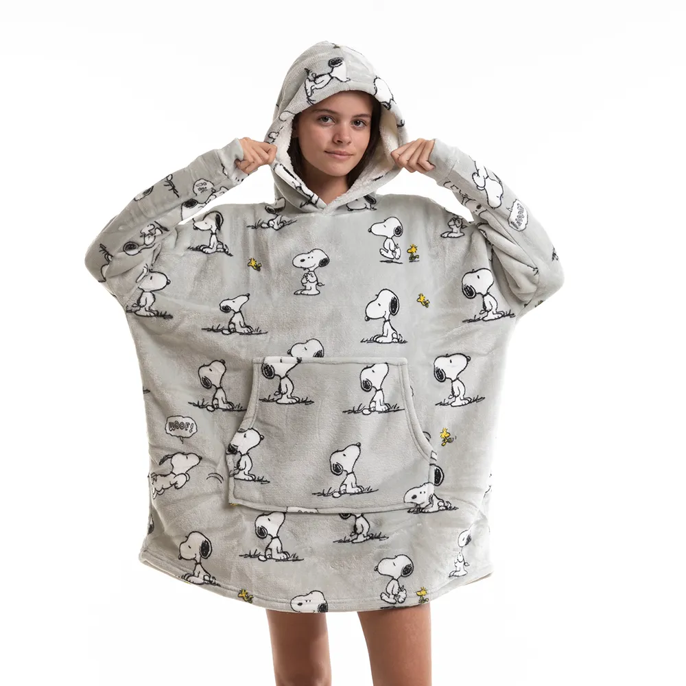 Lo más acogedor para estar en casa descansando o jugando junto al adorable Snoopy. Su tamaño OVERSIZE con capucha y bolsillos rellenos de corderito lo hacen que sea infaltable este invierno Licencia oficial Peanuts.