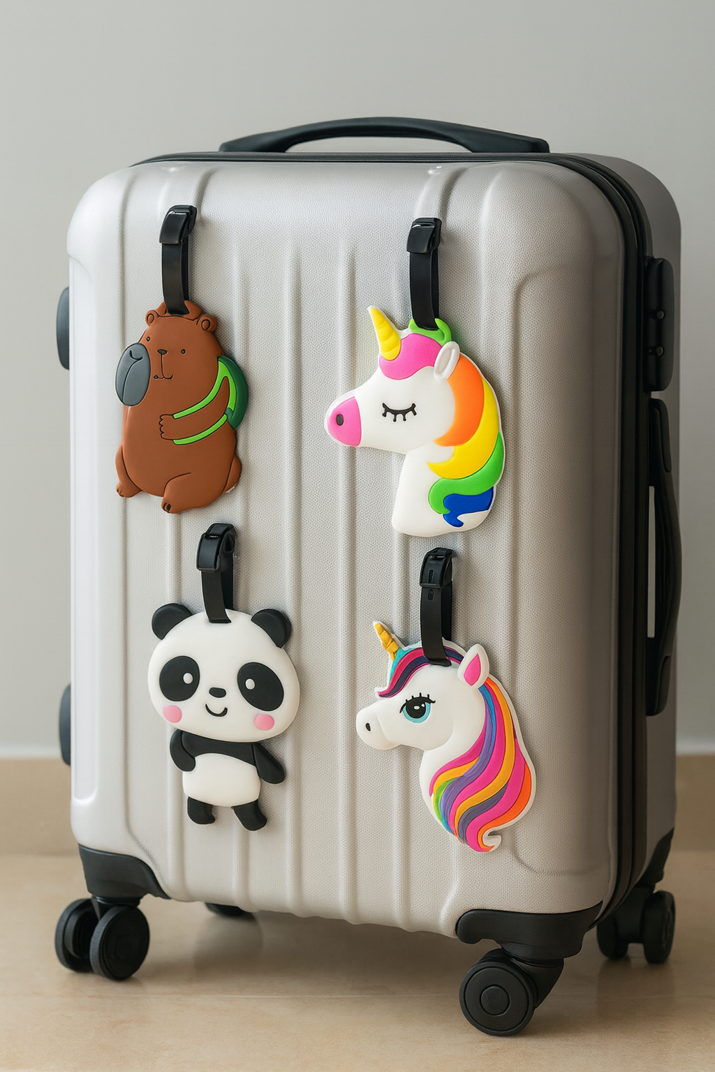 Identificadores de equipaje con divertidos diseños de personajes. Este identificador es ideal para ayudar a personalizar y reconocer fácilmente tu maletas de viaje.
