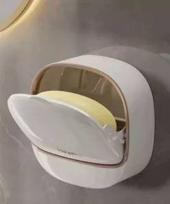 Jabonera Blanco con Tapa, cuenta con drenaje, trae consigo un gancho de cinta adhesiva sin necesidad de dañar la pared
