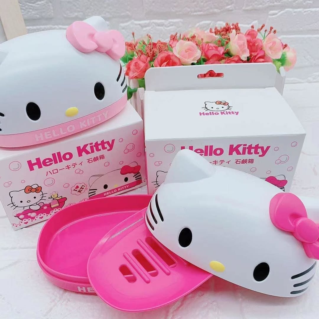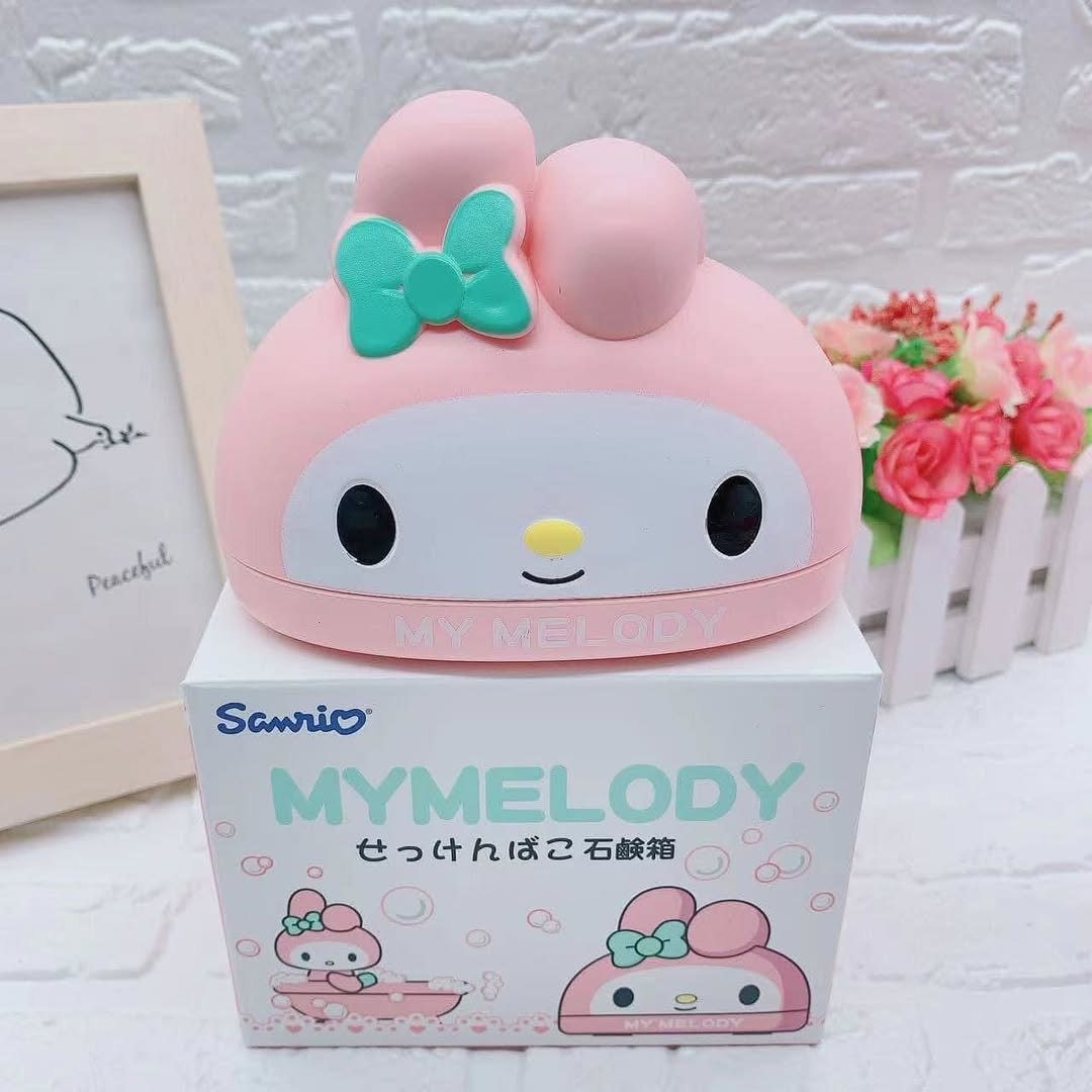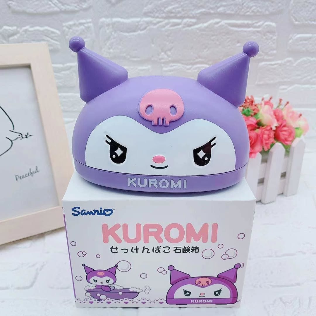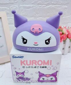 Jabonera con Tapa en forma de kuromi y my melody. Cuenta con una bandeja para el drenaje. Diseño único y bonito