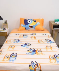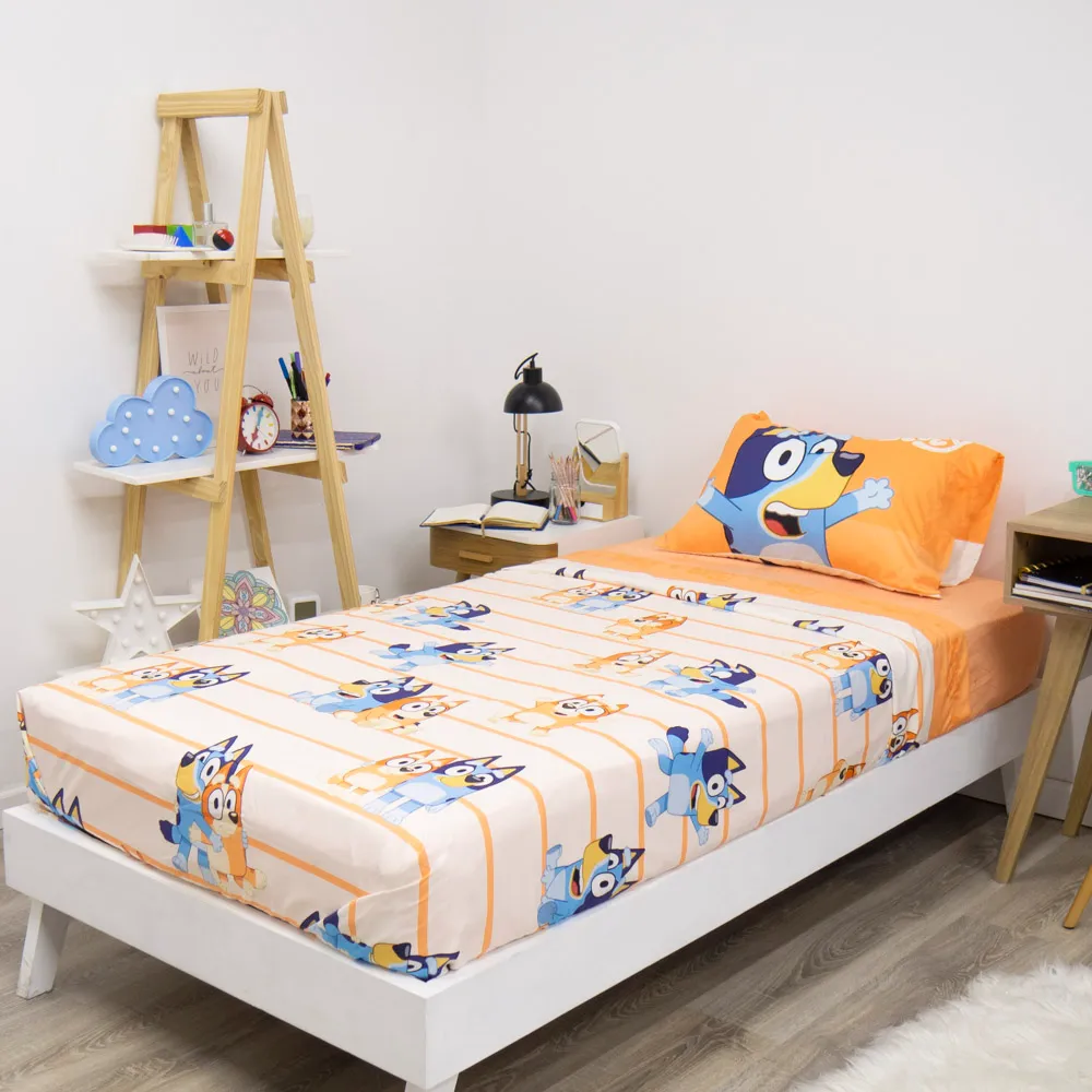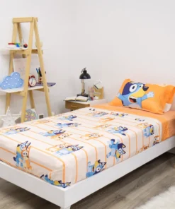 Juego de sábana 1 1/2 plaza – Bluey El juego de Sabana incluye tres piezas. Cada pieza tiene un diseño único y divertido junto a Bluey y Ringo.