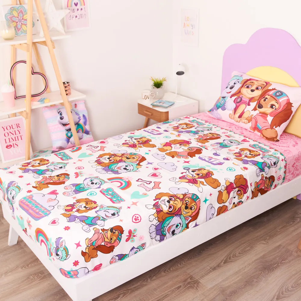 El juego de Sabana incluye tres piezas con sus cachorritas favoritas La funda de almohada es reversible. Su nueva tela ultra soft brinda el máximo confort de suavidad al tacto.