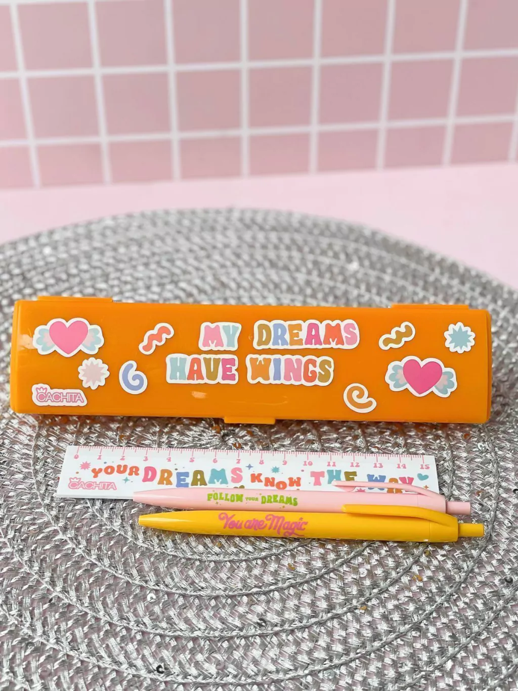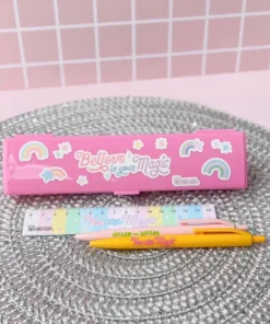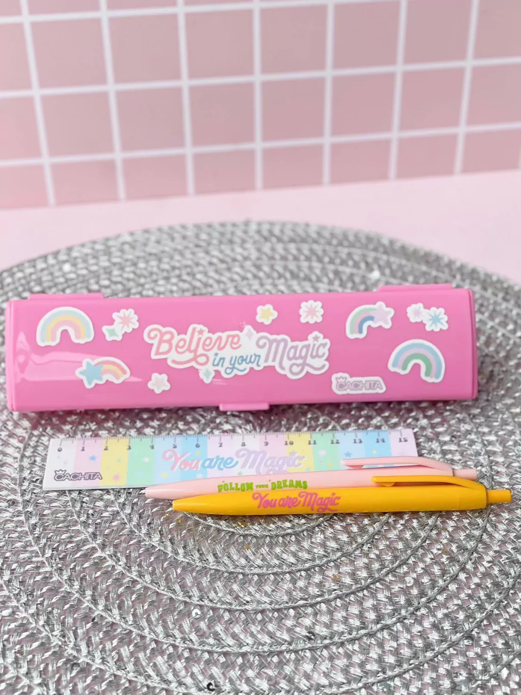 Incluye: cartuchera, plancha de stickers vinílicos para decorarla, 1 regla y 2 lapiceras!