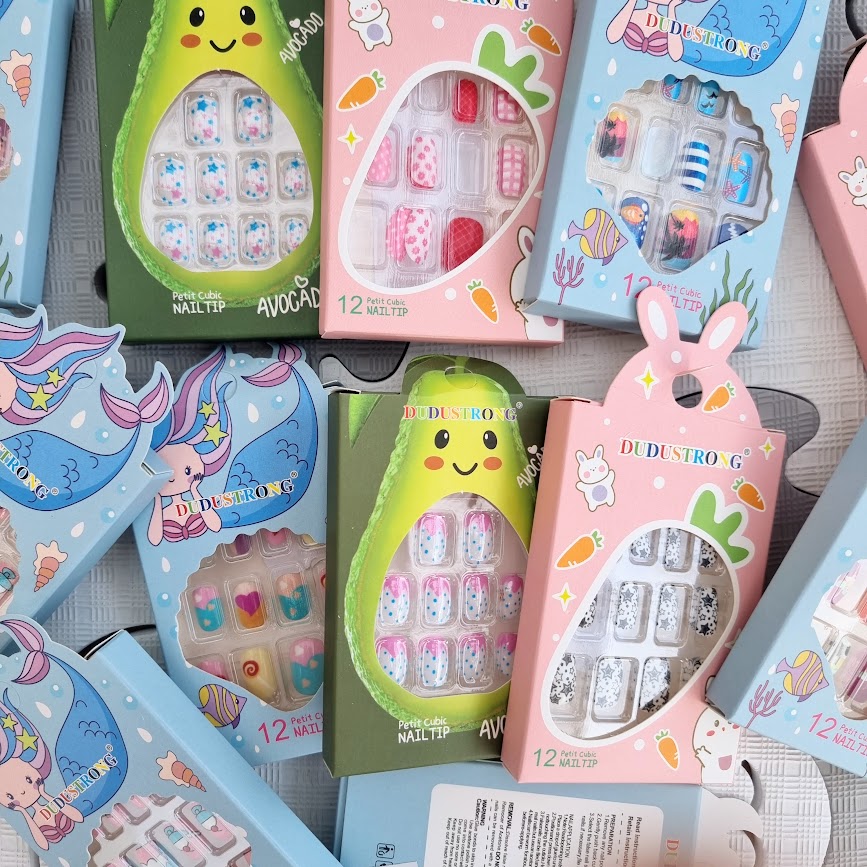 Uñas postizas adhesivas, infantiles tamaño mini como para niñas hasta 6 años.