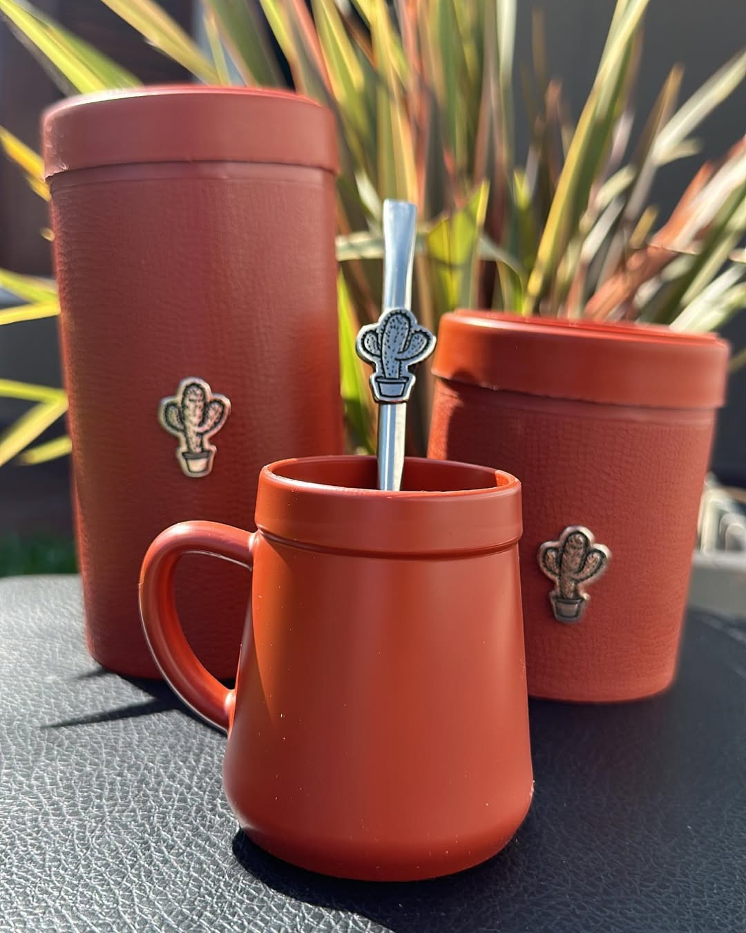 Bombilla acero con dije llama o cactus (dependiendo stock) y sistema vaciado fácil.