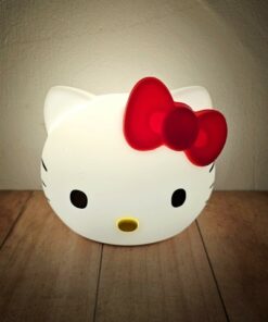 adorno de silicona RGB de Hello Kitty, que funciona como una lámpara táctil de escritorio. Este tipo de lámpara es recargable por USB y está hecha de silicona suave.