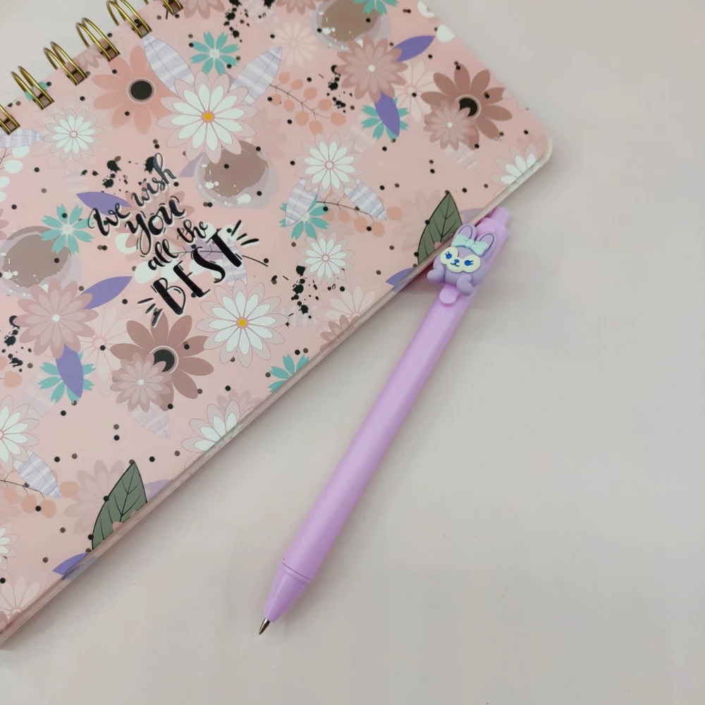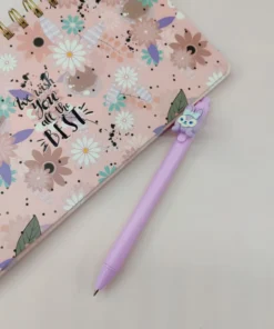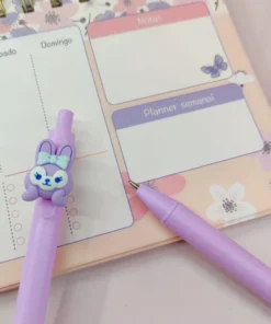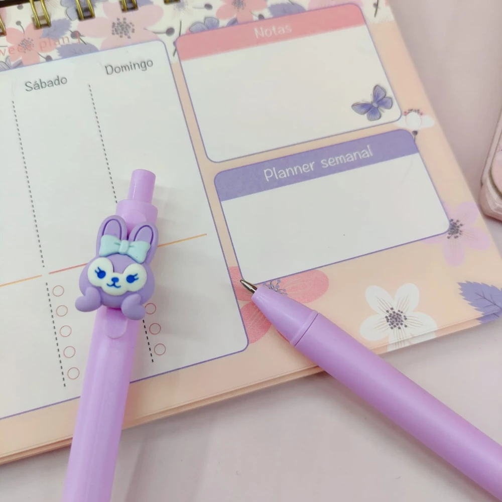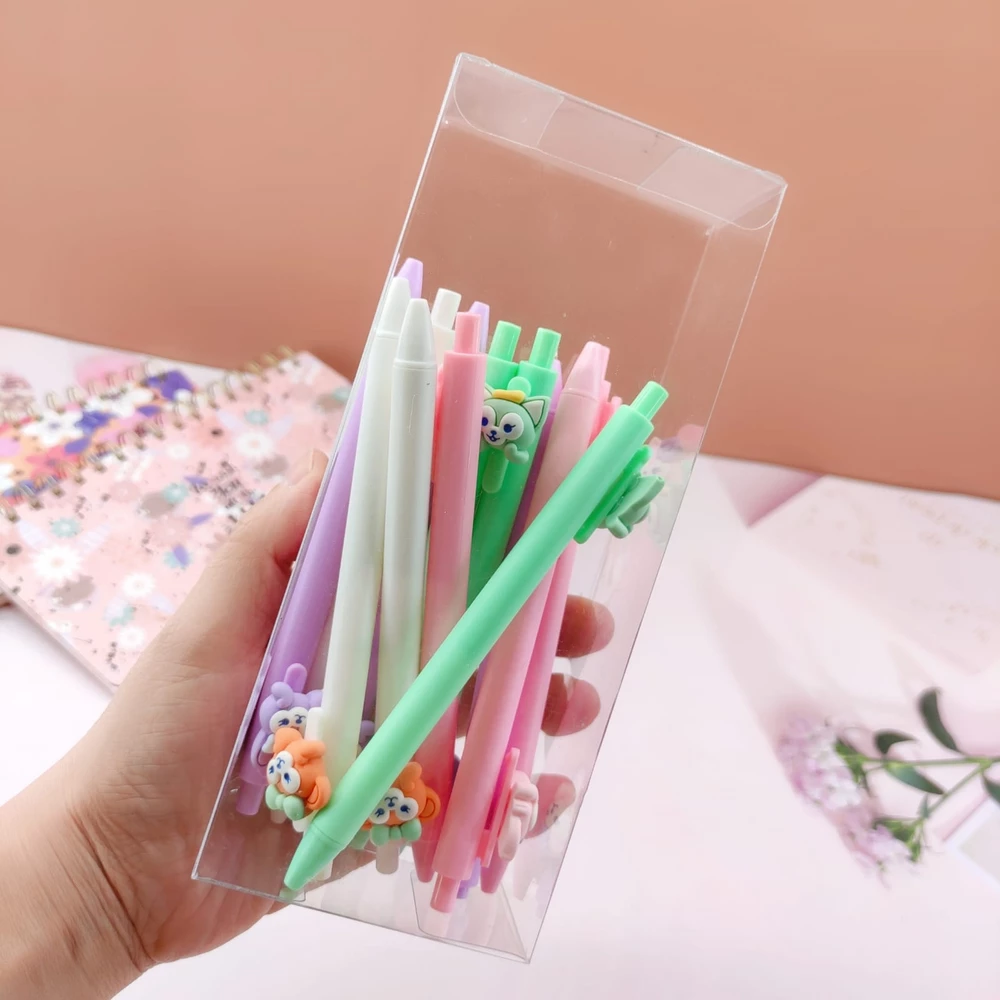 (Pack 12 biromes en tonos rosa, verde, lila, blanco, cuenta con un sistema retráctil y un clip sujetador el cual tiene un adorno con forma de animales. Son todas con tinta negra.)