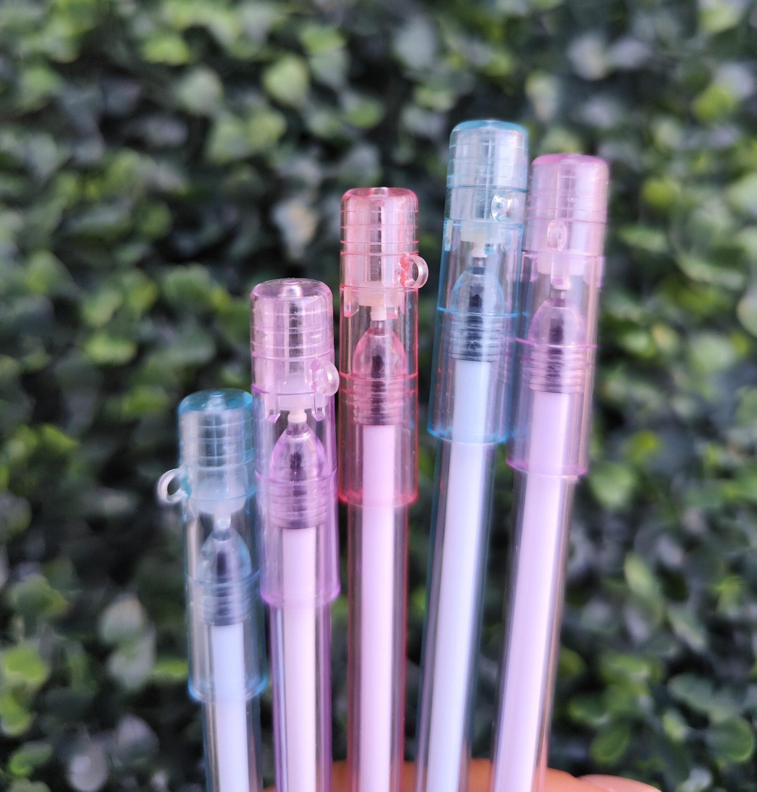 Elegancia y precisión en cada trazo. Este set incluye 3 lapiceras de tinta negra con cuerpo transparente en suaves tonos pastel, perfectas para escribir con estilo.