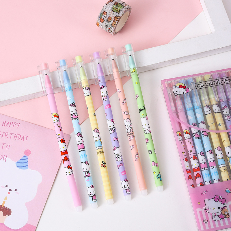Sumá a tu cartuchera este set de 12 lapiceras borrables de Hello Kitty. Con diseños únicos y súper tiernos en tonos pastel, estas lapiceras no solo escriben increíble, sino que también podés borrar y corregir sin drama. ????