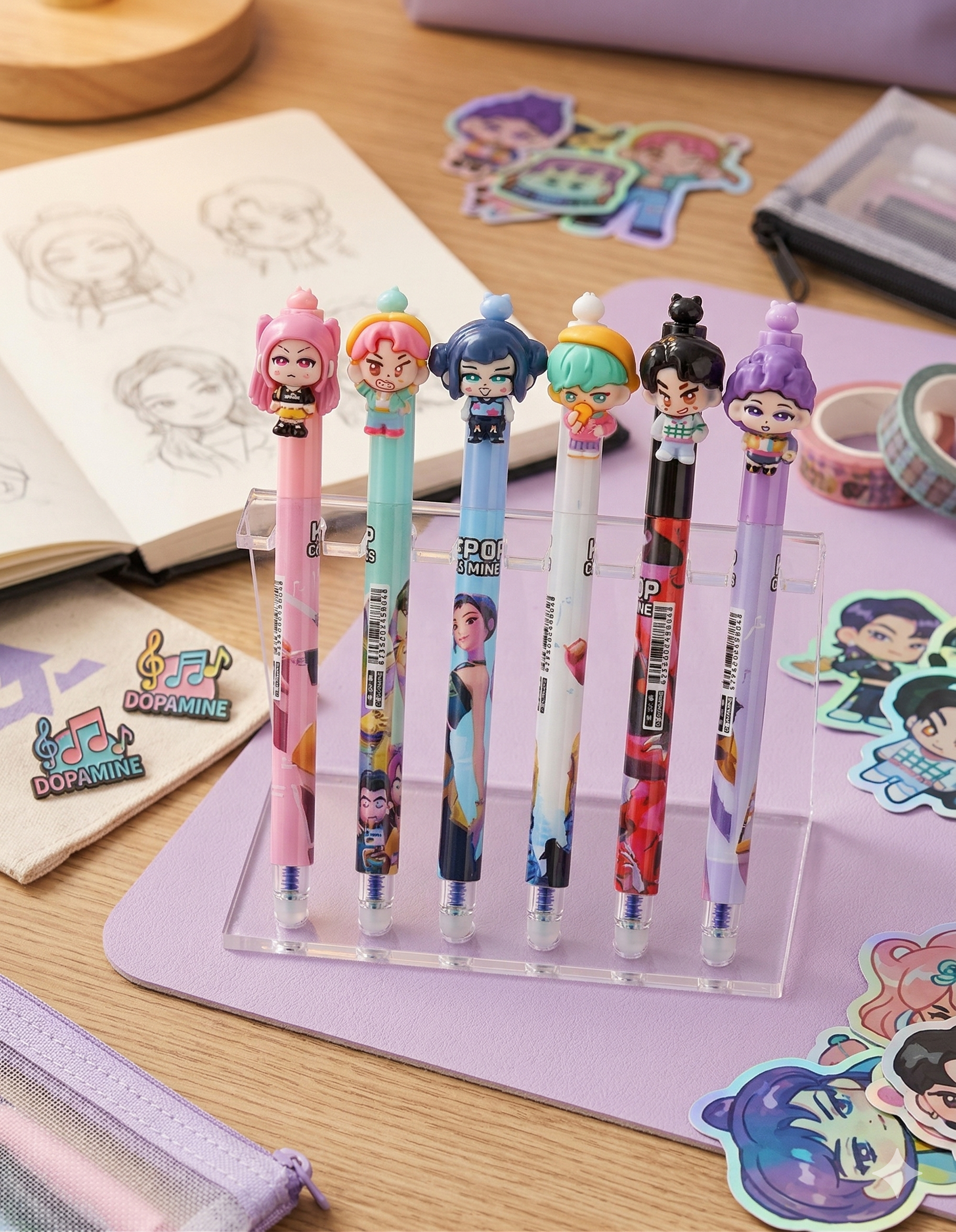 Bolígrafo decorativo con personajes animados, combina funcionalidad y diseño atractivo en un solo producto. Ideal para uso escolar, de oficina o como artículo de regalo.