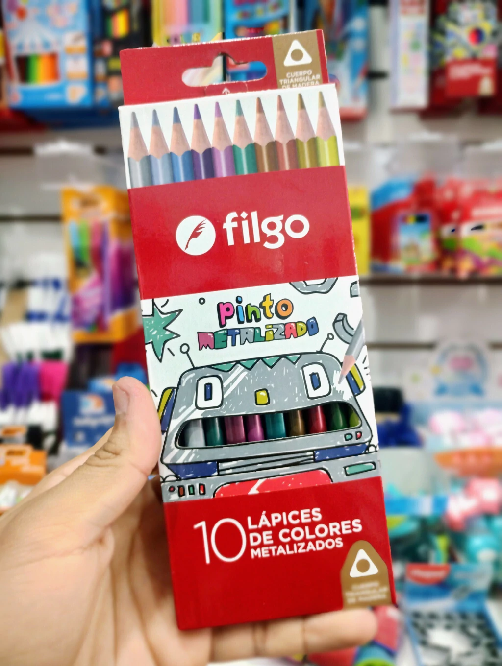 ¡Dale un toque brillante a tus dibujos con estos lápices de colores metalizados FILGO! ????✨ Perfectos para artistas de todas las edades, estos lápices ofrecen colores vibrantes y un acabado metálico que hará que tus creaciones destaquen. ????????️