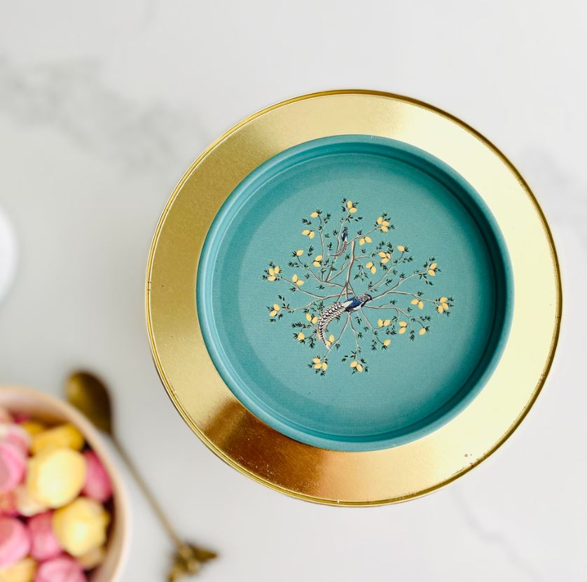 -Material: Hojalata con impresión en litografía a todo color y stamping dorado