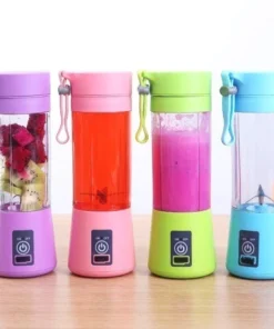 esta licuadora portátil es para usar mientras viaja. Cabe fácilmente en su bolso, lo deja en su automóvil o lo sostiene en su mano para mantenerlo fresco con jugo en cualquier momento.