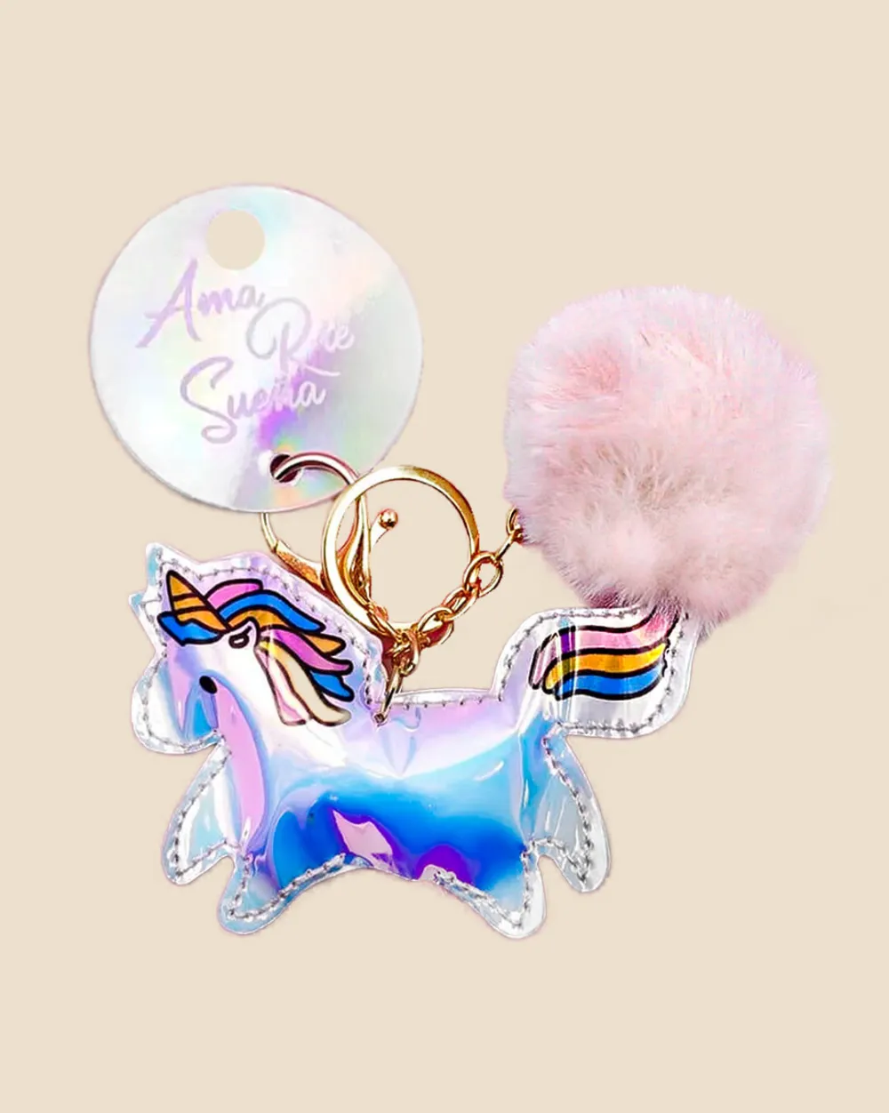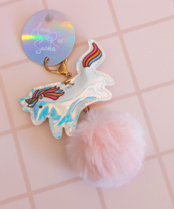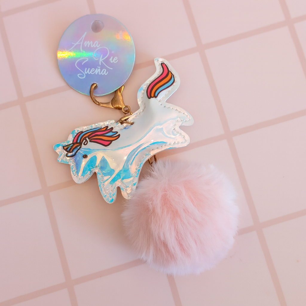 Llavero con pompón y unicornio