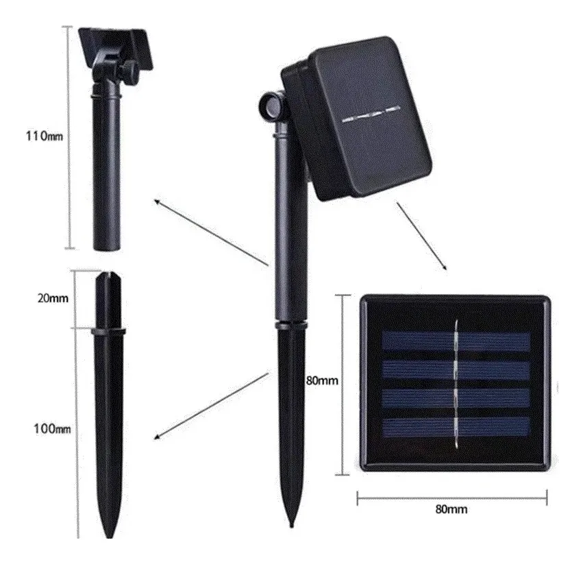 - Las luces LED solares funcionan con un panel fotovoltaico que carga una batería interna durante el día.