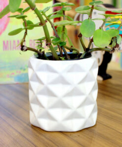 ????Maceta realizada en Cerámica en color Blanco con textura tipo Origami. Su forma geométrica brinda un toque natural y moderno a cualquier espacio.