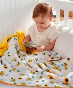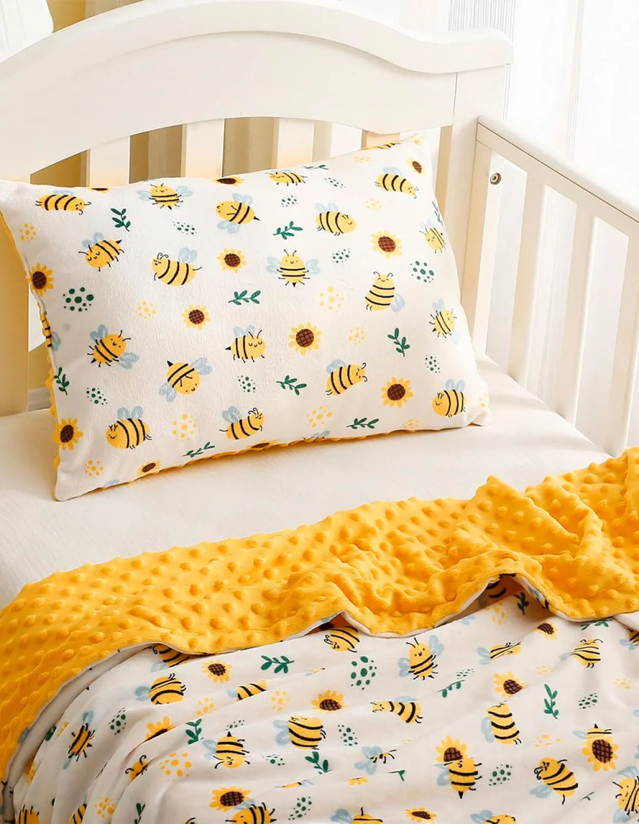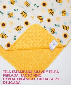 Manta infantil con dibujos, confeccionada con doble cara de materiales suaves, diseñada para brindar calidez, suavidad y confort a niños. Su combinación de tela estampada y felpa suave la convierte en una opción práctica y agradable para el uso diario, tanto en casa como al salir.