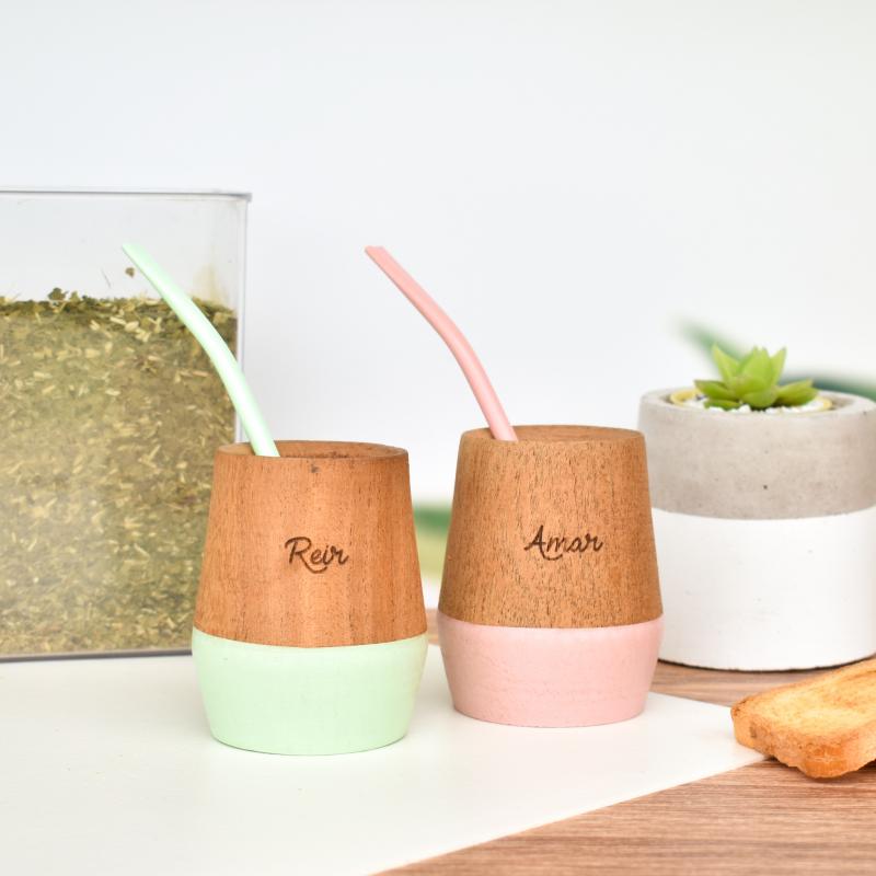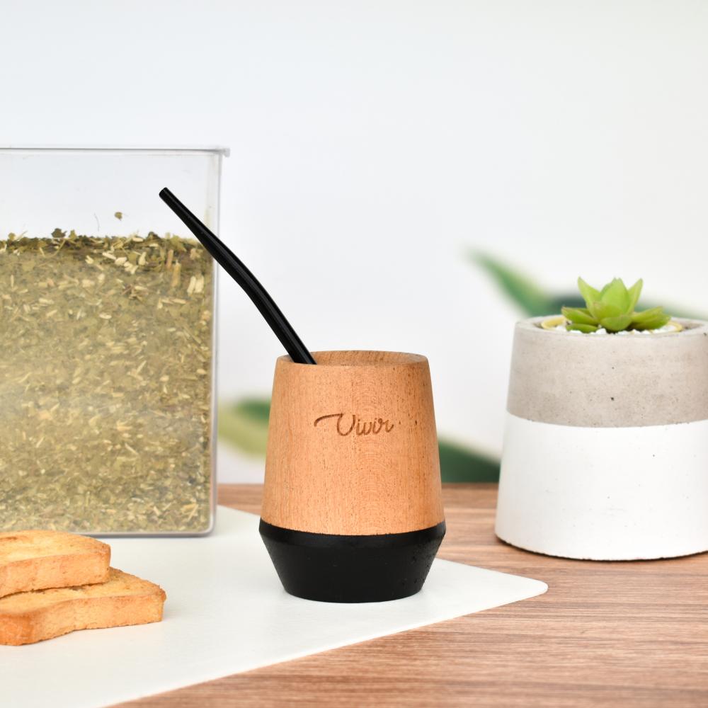 MATE ARTESANAL DE MADERA CON BOMBILLA