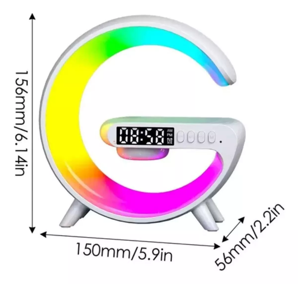 Lámpara de mesa con altavoz y cargador inalámbrico para celular.
