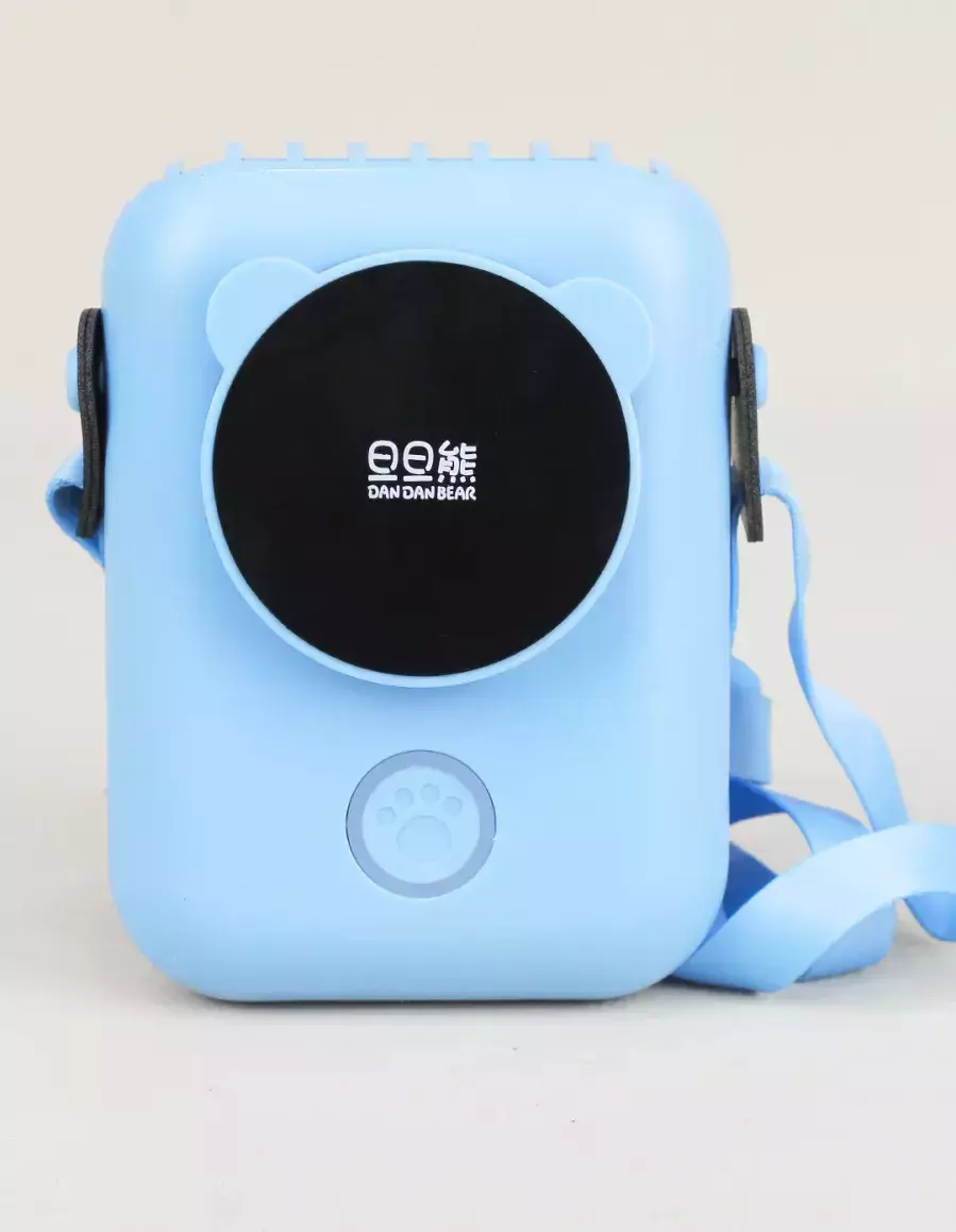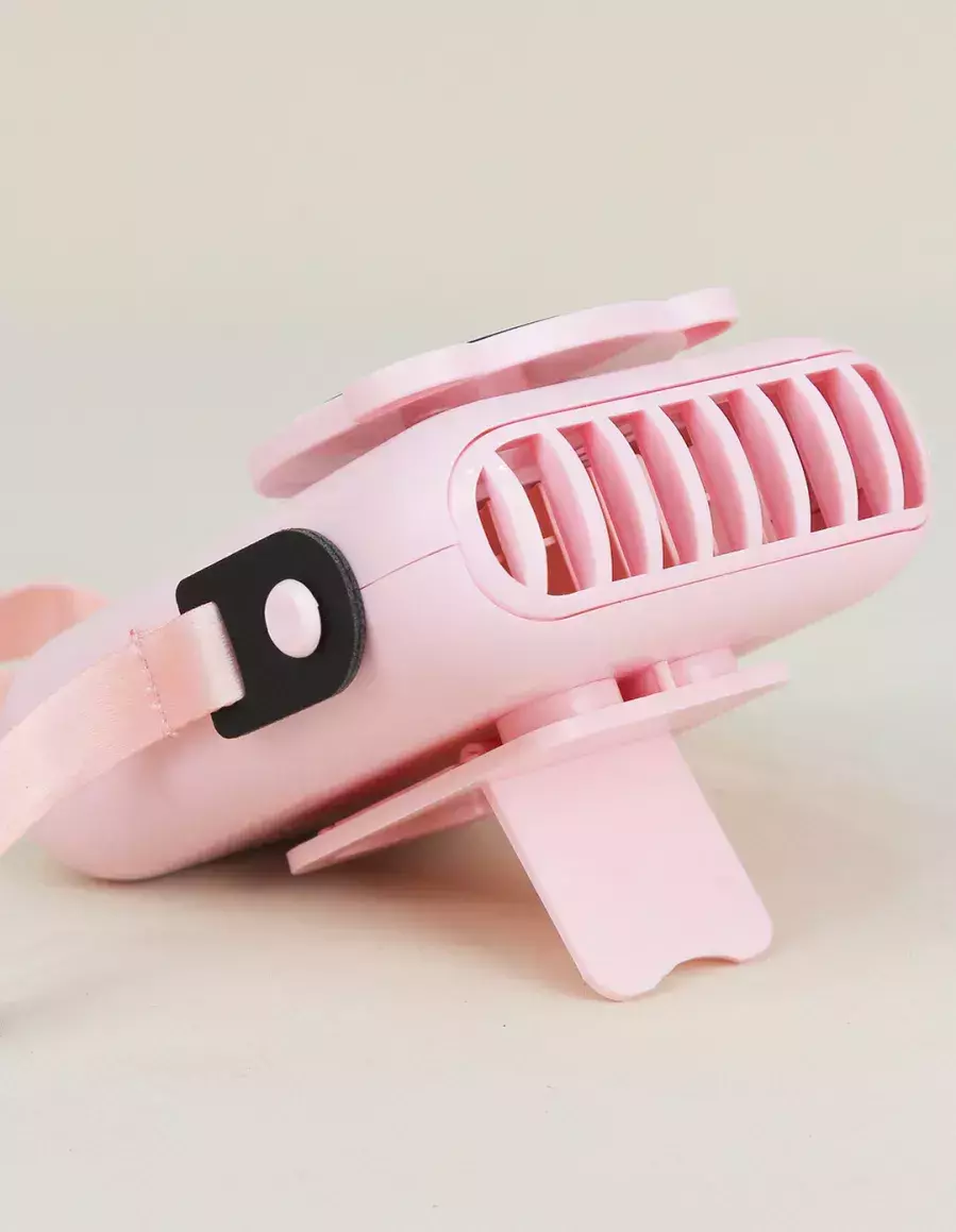 Mini ventilador multifuncional con correa y soporte, cuenta con tres velocidades , a carga USB, incluye el cable.