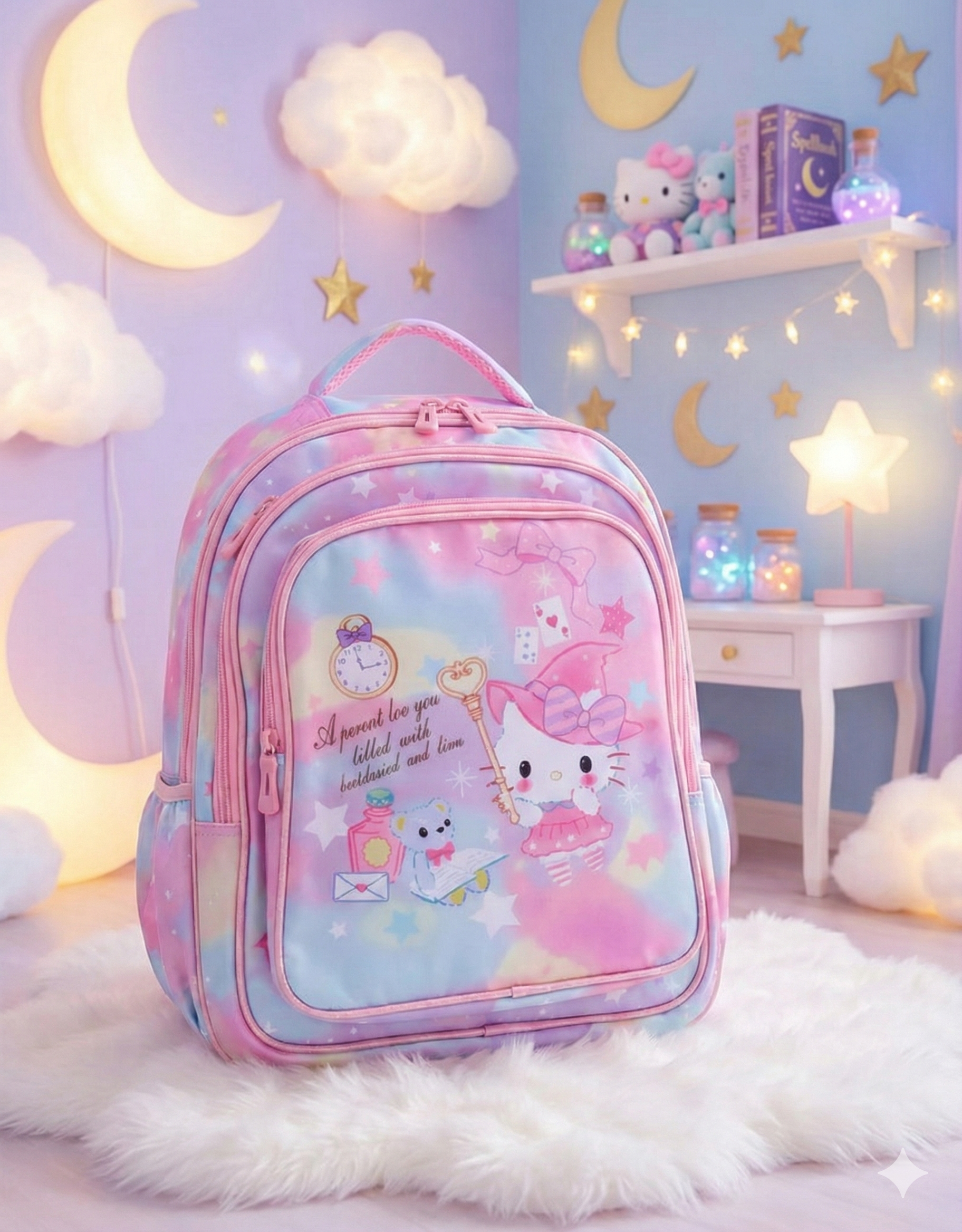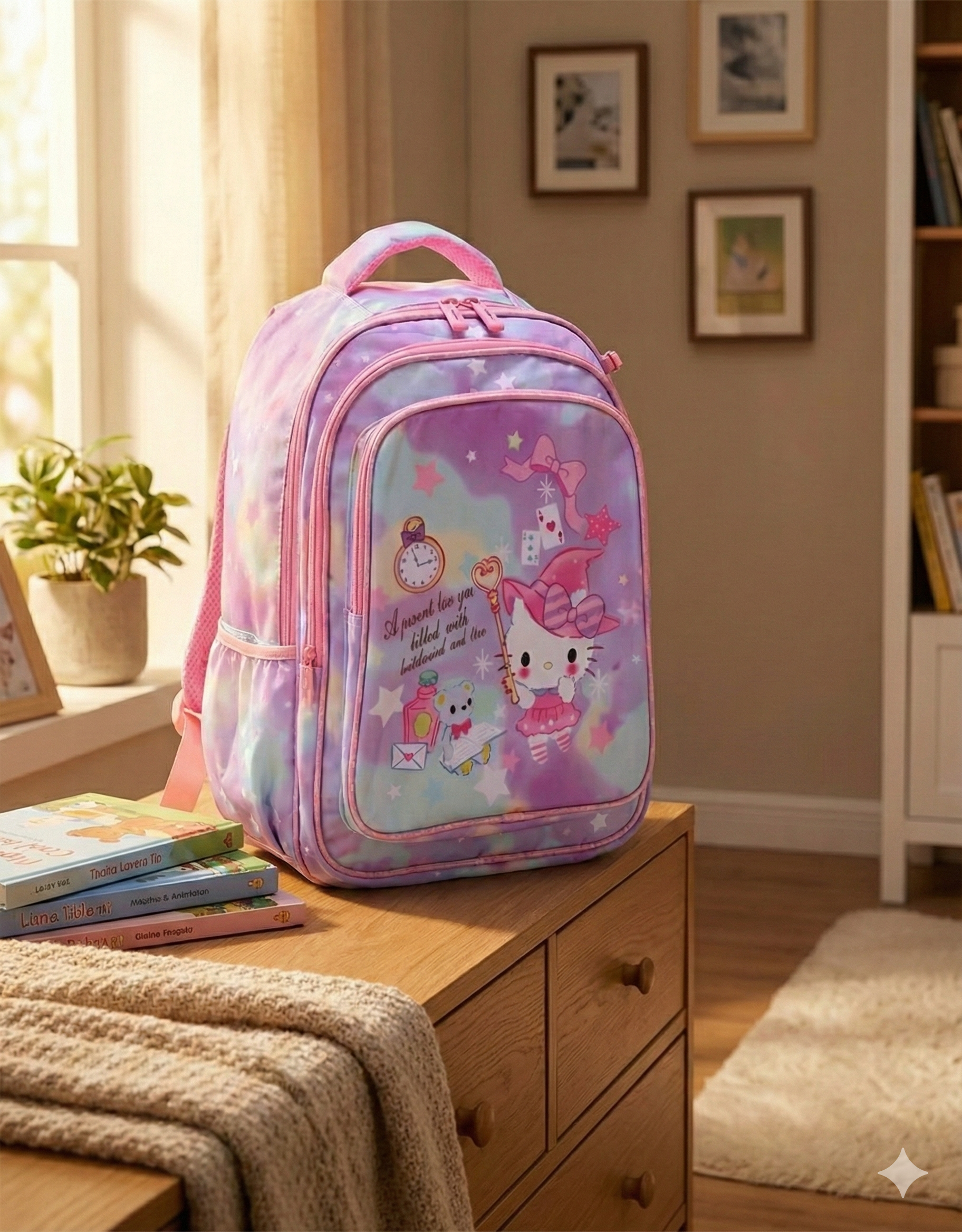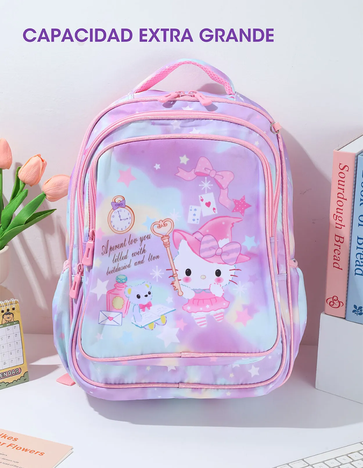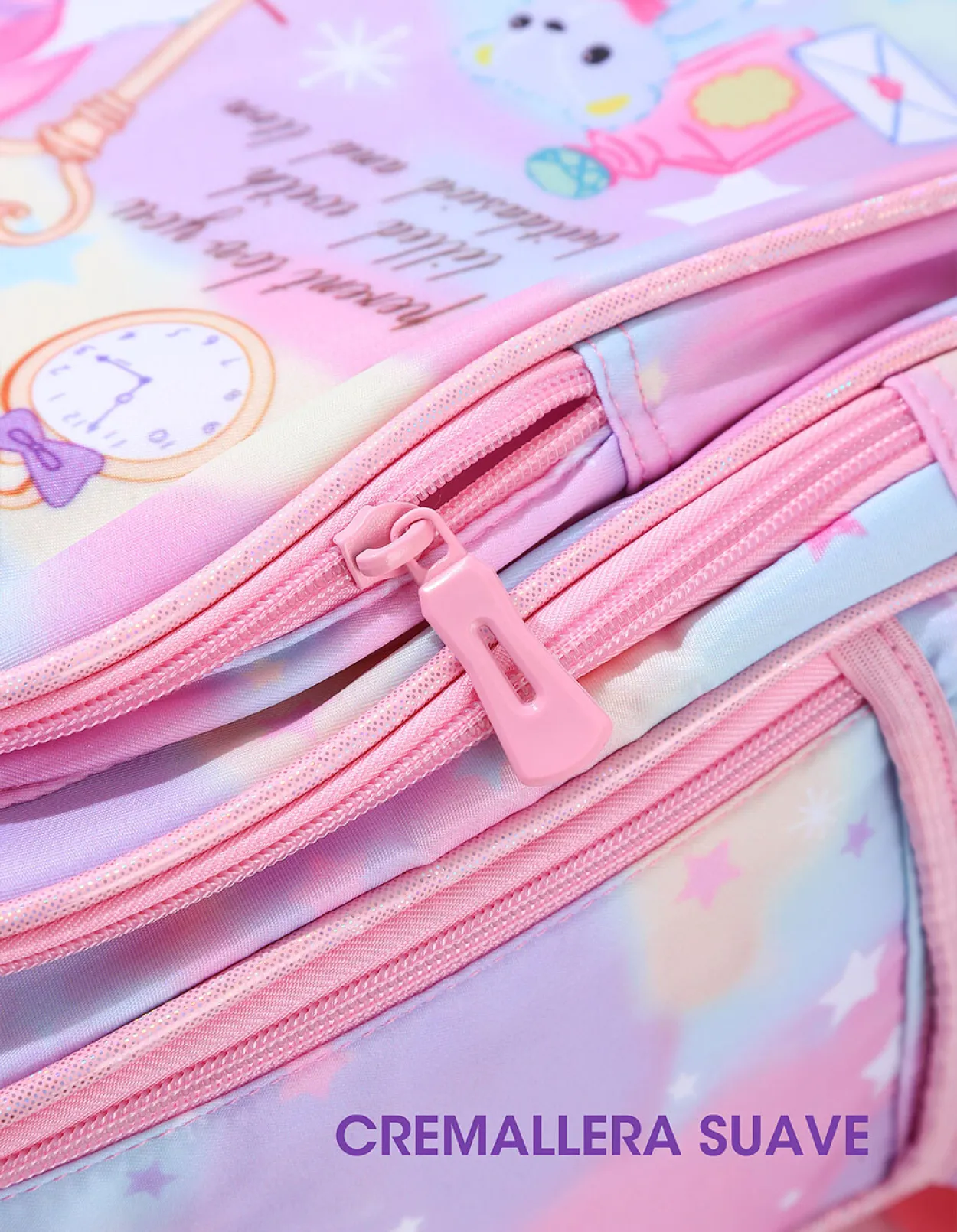 Mochila infantil con diseño animado y colores suaves, ideal para uso diario, salidas, jardín o escuela.
