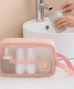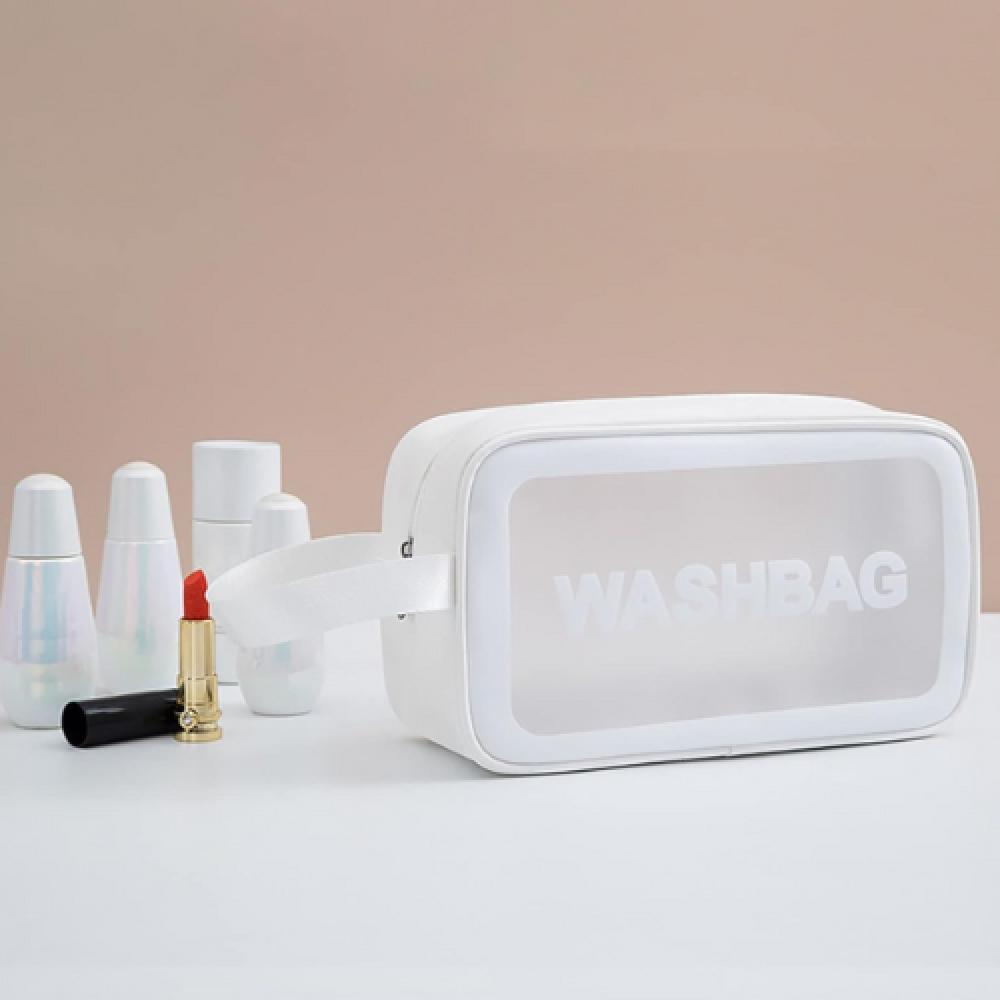 Práctico y moderno neceser tipo washbag, ideal para llevar tus productos de higiene, maquillaje o cosmética de forma organizada. Diseñado con material resistente e impermeable, cuenta con un frente transparente que permite visualizar fácilmente el contenido. Su cierre seguro y manijas reforzadas lo hacen perfecto para viajes, gimnasio o uso diario.