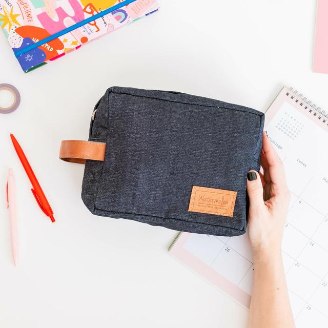 Necessaire de cordura con manija de ecocuero para más practicidad