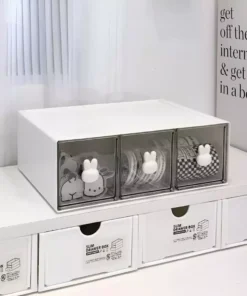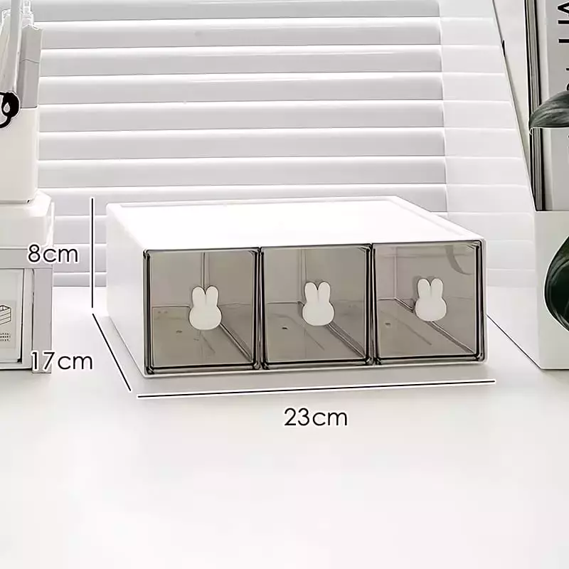 Este organizador cuenta con tres cajones y manija de conejo cada una. Ideal para almacenar brochas, artículos de librería, maquillaje, etc