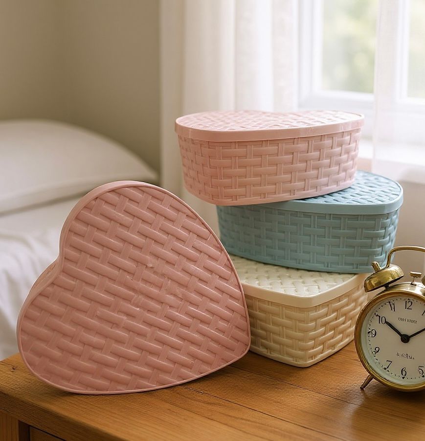 Corazón tramado símil ratán con tapa organizador. Ideal para ordenar el placard o los cajones.