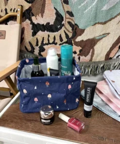 Organizador de tela plegable, tiene una estructura de metal que le brinda estabilidad y soporte. Cuenta con manijas para facilitar su transporte.