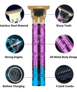Apto tanto para rasurar patillas y barba como para realizar delicados cortes y diseños en el cabello rasurado.