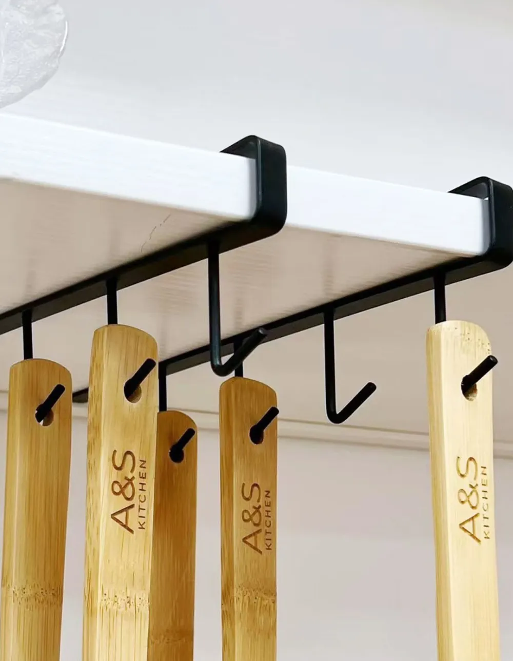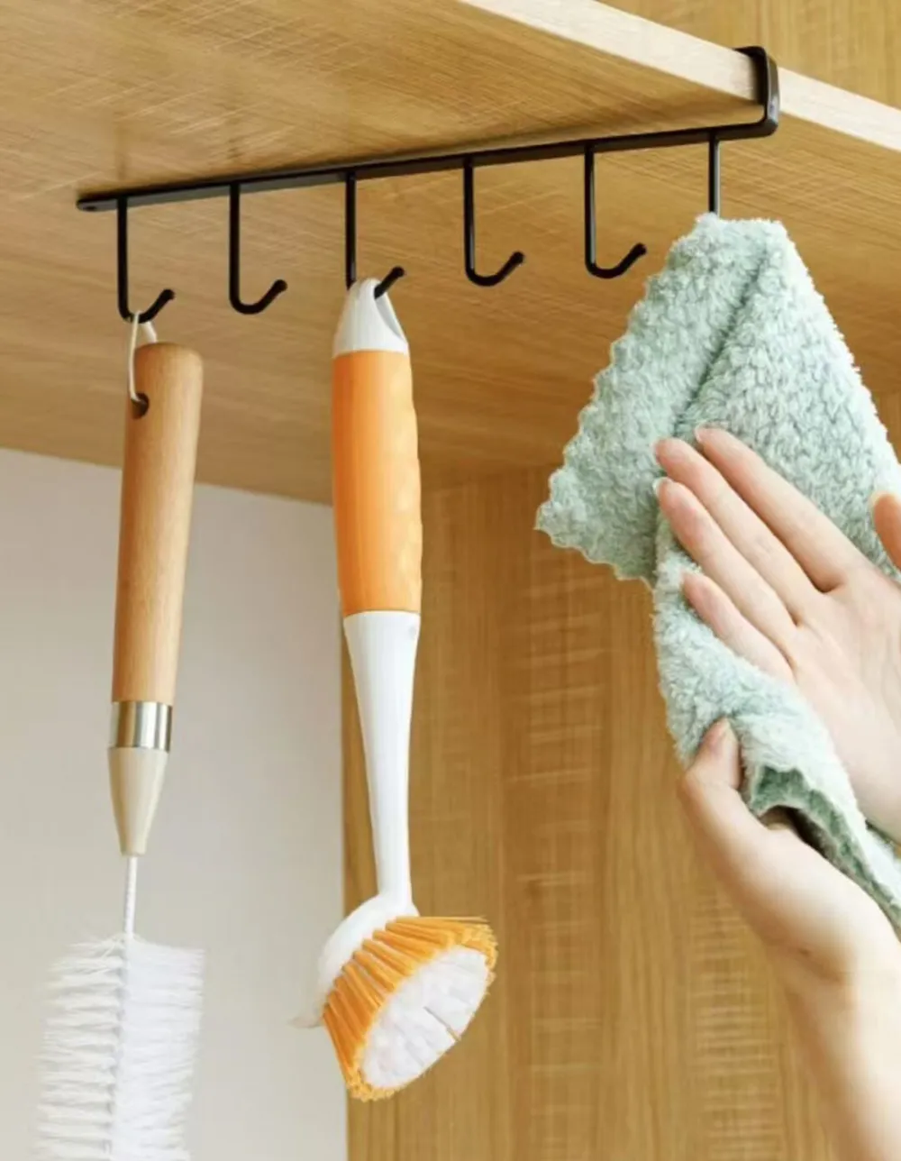 Organizá tu cocina de forma práctica y elegante con este perchero metálico de 5 ganchos. Ideal para colgar utensilios, tazas, repasadores, coladores o accesorios de cocina, optimizando el espacio sin necesidad de taladrar.
