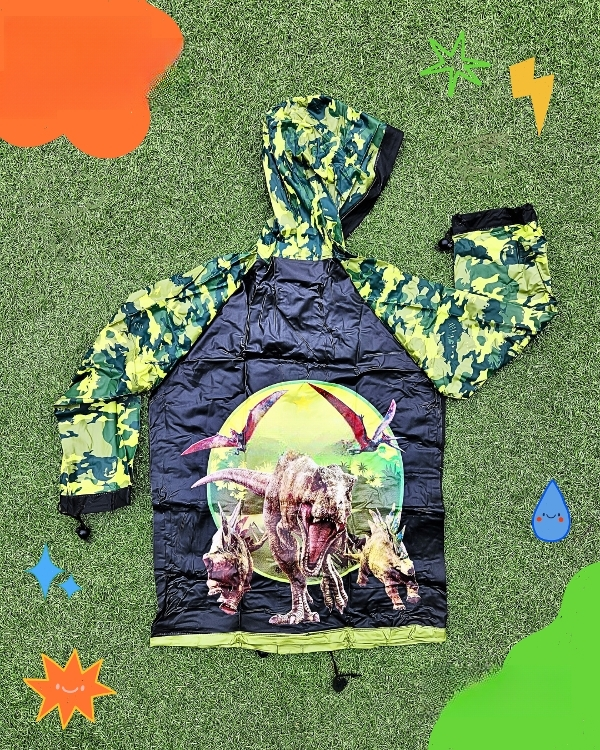 -Tiene Tiras ajustables en los puños, en la capucha y en la cintura.