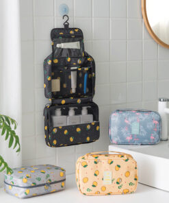 Porta Cosmetico colgante, compacto y resistente al agua, con varios compartimentos y ventana/malla transparente para organizar tus productos de higiene y maquillaje sin complicaciones. Perfecto para viajes, gimnasio o para tener todo a mano en el baño