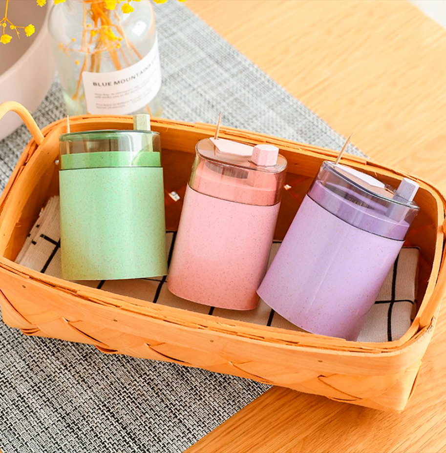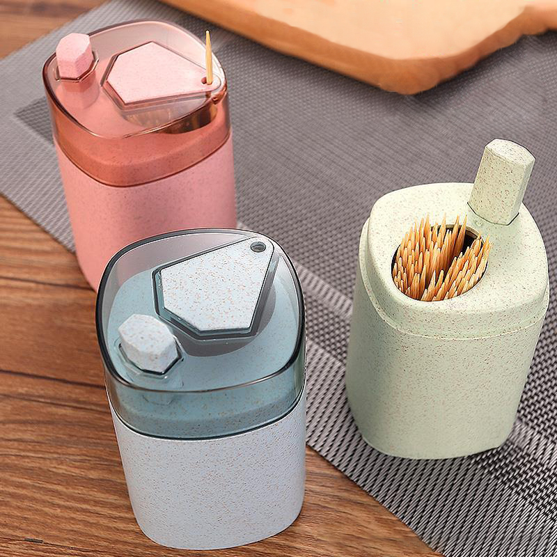 Porta escarbadientes con sistema de botón. Calidad importación.