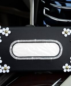 Porta pañuelitos para auto negro con margaritas blancas – IMPORTADO