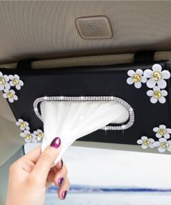 Porta pañuelitos para auto negro con margaritas blancas – IMPORTADO