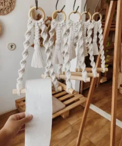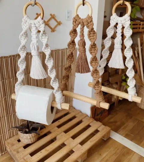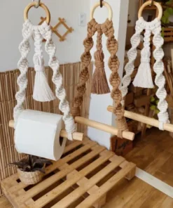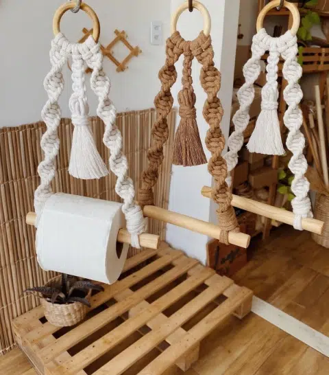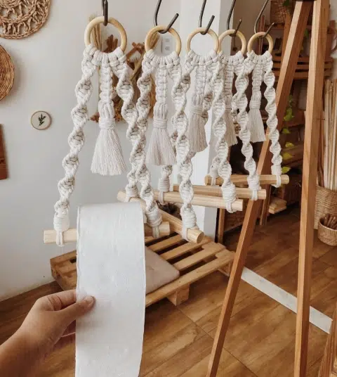 1 porta papel confeccionado en macramé